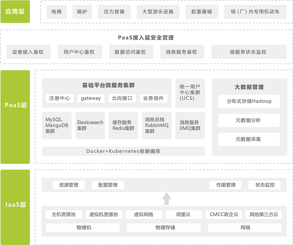 PaaS系统:基于分布式架构集群管理平台,以微服务为架构核心形成标准化、灵活开放的平台核心支撑层。
